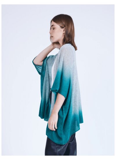 Cape femme ouverte en cachemire 2 fils 9GG, manches ¾