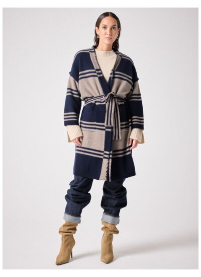 Quels avantages offre la maille 7G utilisée pour ce cardigan ?