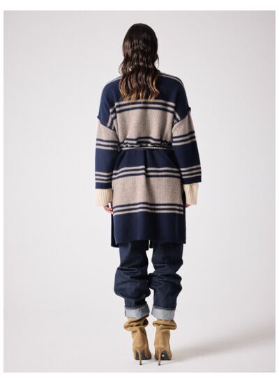 Sa coupe longue et ajustée flatte la silhouette tout en apportant une touche élégante et décontractée, parfaite pour superposer sur une tenue casual ou habillée.