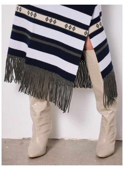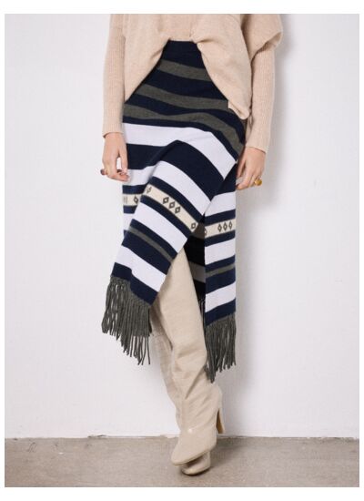 Jupe mi-longue à franges pour femme, rayures bohémiennes