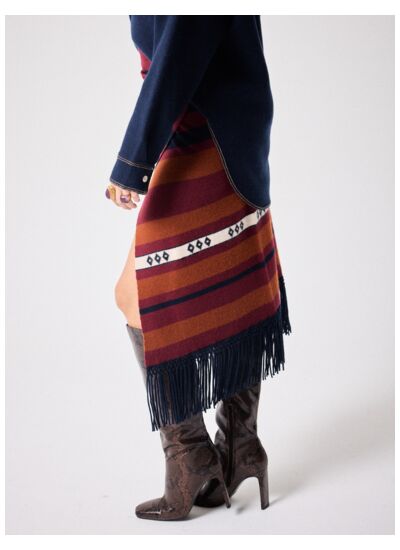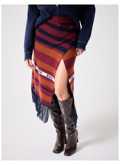 Jupe mi-longue à franges pour femme, rayures bohémiennes