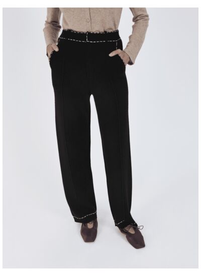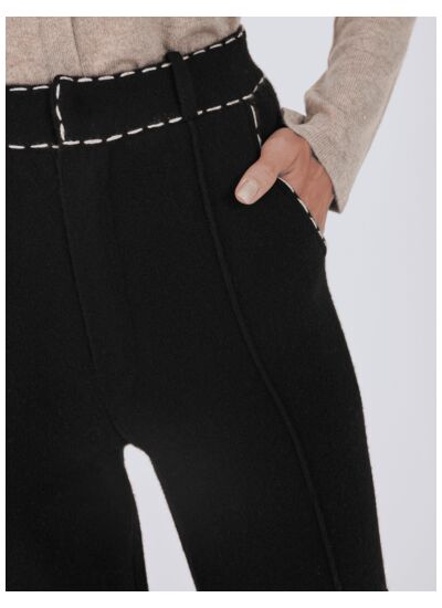 Pantalon costume femme en cachemire 2 fils 12GG, surpiqûres fait main