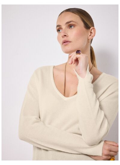 Quelle est la particularité du cachemire 2 fils utilisé dans ce pull ? Le cachemire 2 fils combine résistance et douceur, offrant un vêtement durable qui conserve sa forme et sa texture après plusieurs utilisations, tout en restant extrêmement confortable au contact de la peau.