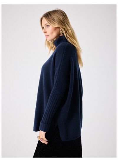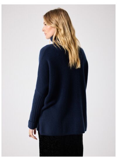 Ce modèle combine l’élégance d’un poncho à manches longues avec un col roulé ajusté, offrant une silhouette moderne et décontractée. Il s’adapte parfaitement à un look casual chic ou à une tenue plus sophistiquée.