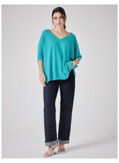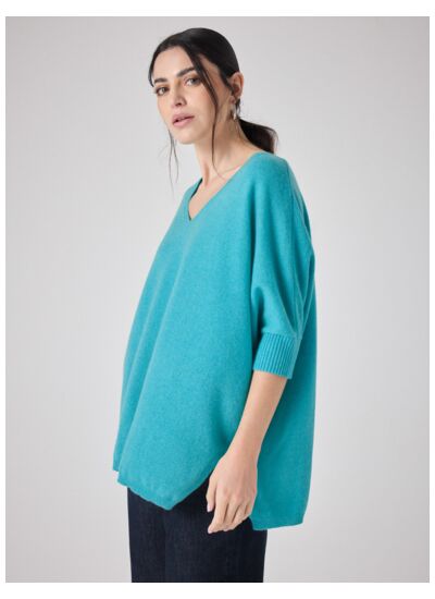 Pull poncho Col V 100% cachemire 2 fils 12GG