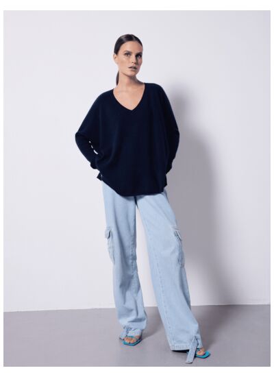 Pull femme en cachemire 2 fils 12GG, col v, manches longues