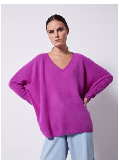 Pull femme en cachemire 2 fils 12GG, col v, manches longues