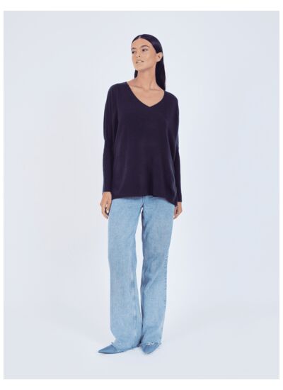 Le col V affine le port de tête et apporte une touche féminine, tandis que la coupe poncho assure une silhouette fluide et moderne. Les manches longues complètent ce look élégant et facile à porter en toutes occasions.