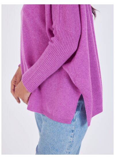 Pull poncho violet femme en cachemire 2 fils 12GG, col V, manches longues