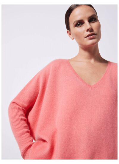 Pull femme en cachemire 2 fils 12GG, col v, manches longues