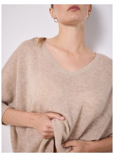 Le pull poncho Rihanna présente une coupe ample et fluide, conçue pour s’adapter à différentes morphologies. Pour un tombé optimal, choisissez votre taille habituelle, la maille souple épousant naturellement les formes.
