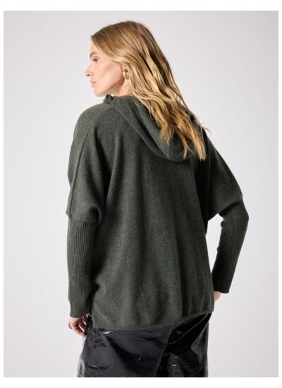 Pull poncho pour femme, col capuche, manches longues / Manches côtelées / Poche kangourou à l'avant / Fentes latérales/ Coupe poncho, oversize / Pull 100% cachemire 2 fils 12GG/Longueur de la taille S/M : 64 cm/Ajoutez deux centimètres supplémentaires par taille.