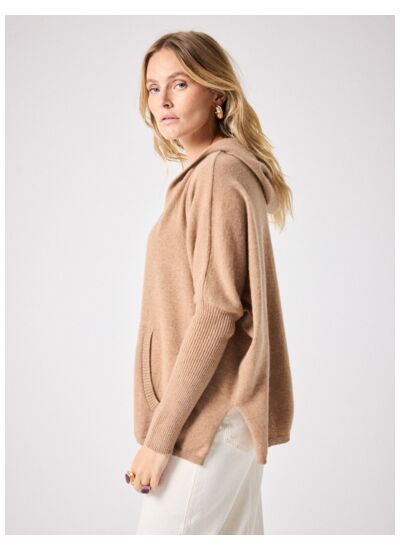 Pull poncho pour femme, col capuche, manches longues / Manches côtelées / Poche kangourou à l'avant / Fentes latérales/ Coupe poncho, oversize / Pull 100% cachemire 2 fils 12GG/Longueur de la taille S/M : 64 cm/Ajoutez deux centimètres supplémentaires par taille.