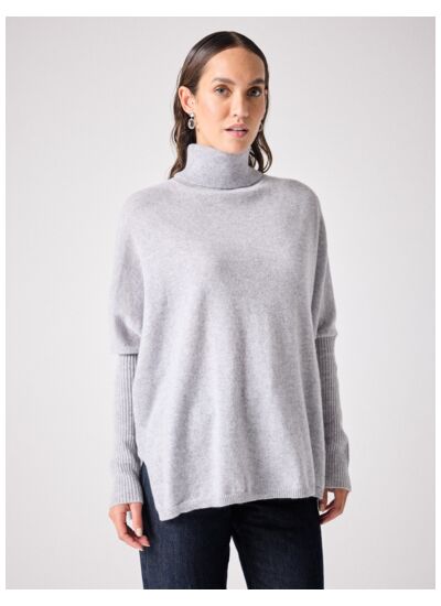 Pull poncho femme en cachemire 2 fils 12GG, col roulé, manches longues côtelés