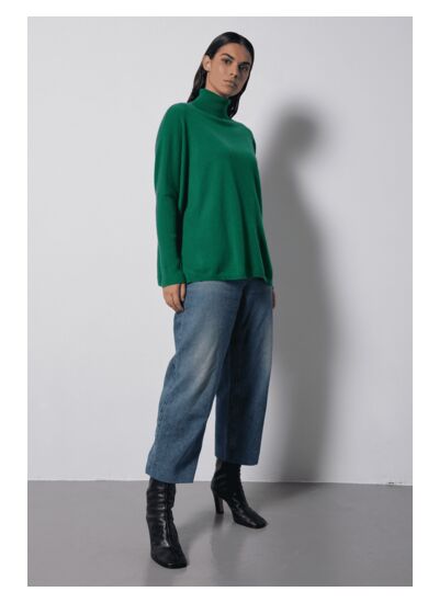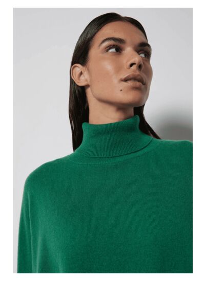 Col roulé vert forêt 100% cachemire 2 fils 12GG
