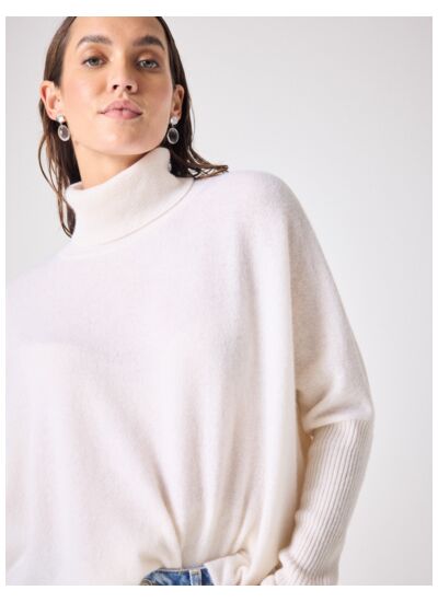 Pull poncho femme en cachemire 2 fils 12GG, col roulé, manches longues côtelés