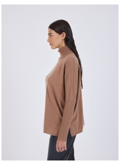 Quelle coupe et style offre ce pull poncho col roulé ? Ce pull combine l’élégance d’un col roulé avec la fluidité d’un poncho, offrant une silhouette moderne et confortable. Les manches longues côtelées apportent une finition soignée qui s’adapte facilement à un look casual ou chic.
