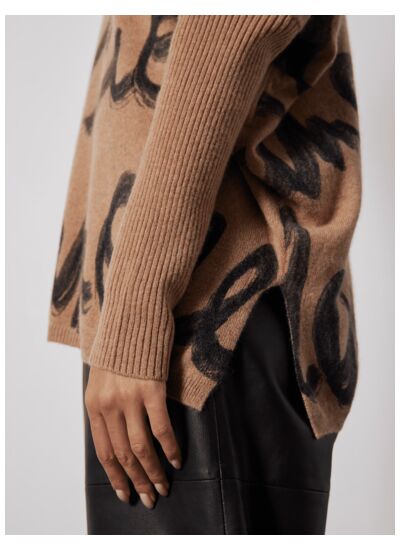 Col rond beige imprimé 100% cachemire 2 fils 12GG