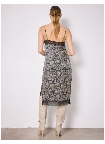 Comment choisir la taille idéale pour cette robe à col en V et bretelles ? La coupe est ajustée mais confortable, privilégiez votre taille habituelle. Pour un effet plus fluide, optez pour une taille au-dessus.