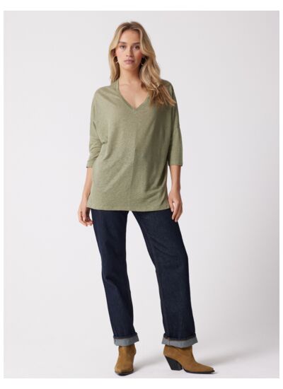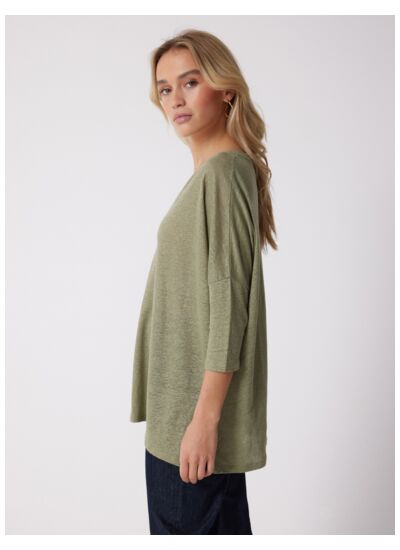 Le T-shirt lin Emilie est-il adapté aux peaux sensibles ? Ce T-shirt en jersey de lin est naturellement respirant et hypoallergénique, idéal pour les peaux sensibles grâce à la douceur et la légèreté du lin. Comment entretenir ce T-shirt pour préserver sa qualité ? Lavez-le à froid ou à 30 degrés, de préférence à la main ou en cycle délicat, et évitez le sèche-linge pour conserver la fibre et la forme. Quelle coupe et quel style propose ce T-shirt ? Le T-shirt Emilie présente une coupe ajustée avec un col en V et des manches longues, offrant une silhouette élégante et facile à associer à un look casual ou sophistiqué. Ce T-shirt convient-il à toutes les saisons ? Grâce à la fibre naturelle du lin, il est particulièrement confortable au printemps et en été, mais peut aussi se porter sous une veste légère en automne pour un style polyvalent. Quelle est la différence entre ce T-shirt en lin et un T-shirt en coton classique ? Le lin est plus respirant, plus résistant et offre une meilleure régulation thermique, ce qui garantit un confort supérieur et une tenue impeccable au fil du temps.
