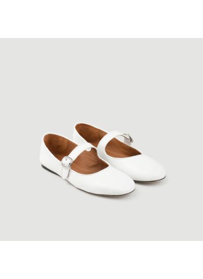 Ballerine Mary Jane en cuir effet froissé munies d'une bride à boucle ajustable.