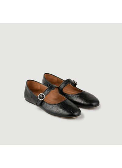 Ballerine Mary Jane en cuir brillant effet froissé munies d'une bride à boucle ajustable.