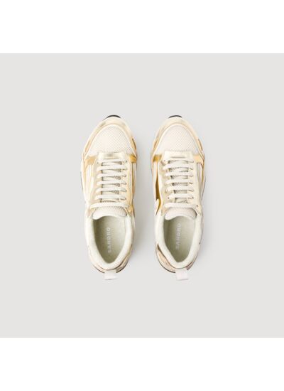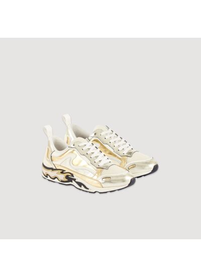 Baskets en mix de cuirs métallisés munies de lacets et d'une semelle à motifs flammes.