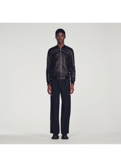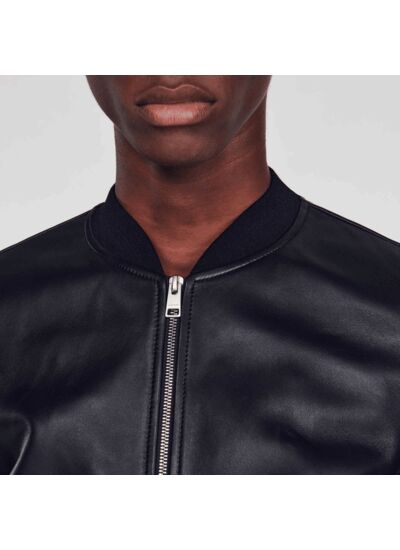 Blouson en cuir d'agneau muni d'un col côtelé, d'une fermeture zippée, et de poches sur les côtés.