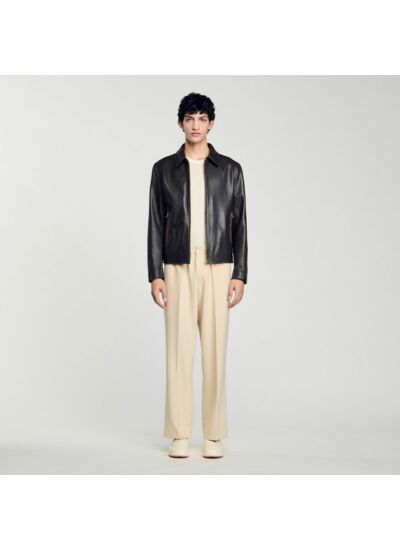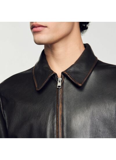 - Blouson en cuir effet usé Sandro Homme