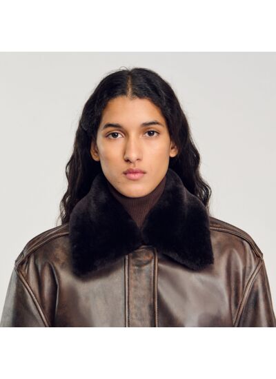 - Col en peau lainée amovible