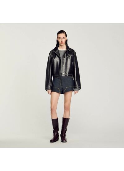 Comment entretenir ce blouson en cuir vieilli Sandro ? Pour préserver son aspect unique, nettoyez-le avec un chiffon doux et utilisez un produit spécifique pour cuir. Évitez l’exposition prolongée à l’humidité et rangez-le à l’abri de la lumière directe.
