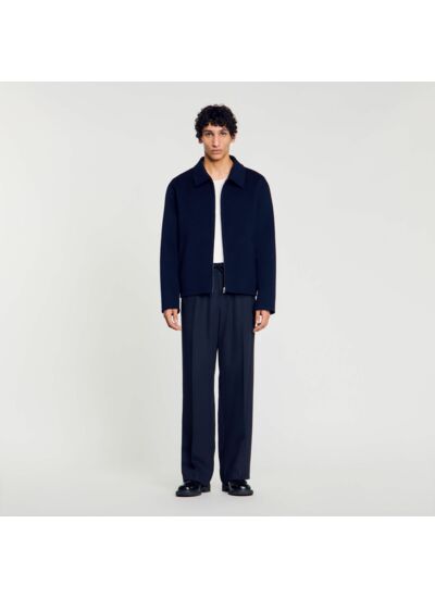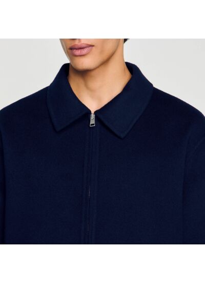 Blouson en laine double face avec fermeture zippée, col cassé, et poches passepoilées.