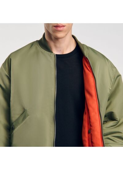 Bomber à manches longues et fermeture zippée, muni de bords côtelés, de poches sur les côtés et d'une doublure contrastée.