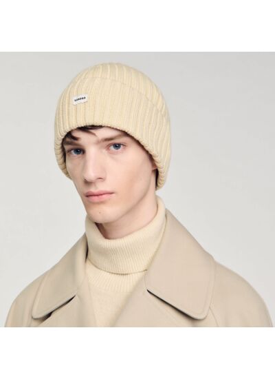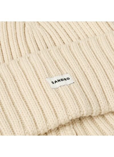 Bonnet en maille côtelée ornée d'un tag SANDRO cousu sur le devant.