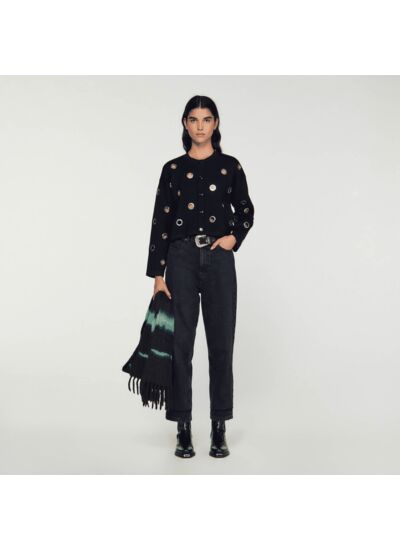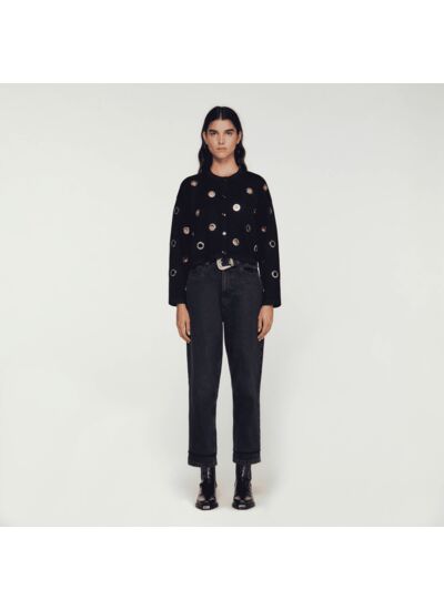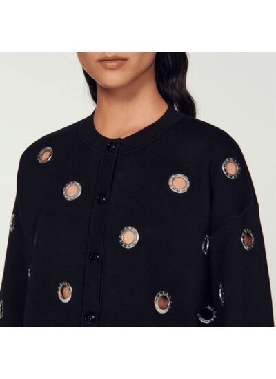 Cardicoat muni d'un col rond, de manches longues et d'une fermeture boutonnée, et orné d'œillets ajourés siglés Sandro en all over.