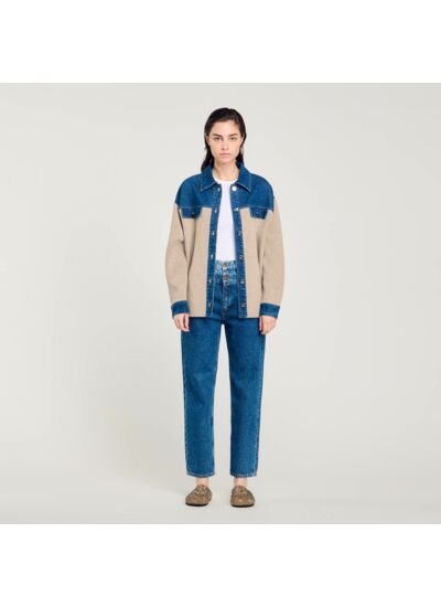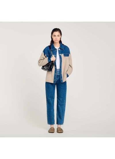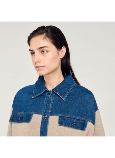 - Cardicoat bimatières en maille et denim Sandro Femme
