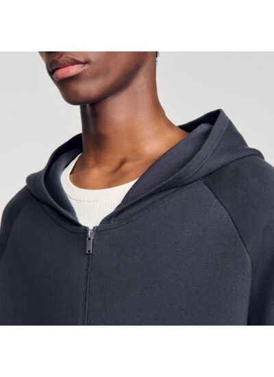 Cardigan en maille milano muni d'une capuche, d'une fermeture zippée et de manches longues.