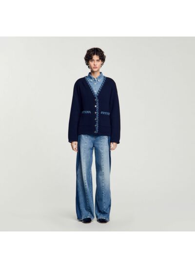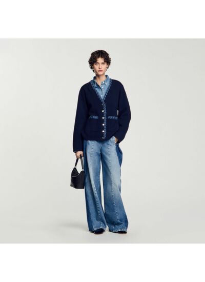 Ce cardigan Sandro est-il adapté à un usage quotidien ? Ce modèle combine confort et style avec ses détails denim, idéal pour un look casual chic au quotidien tout en restant facile à porter.