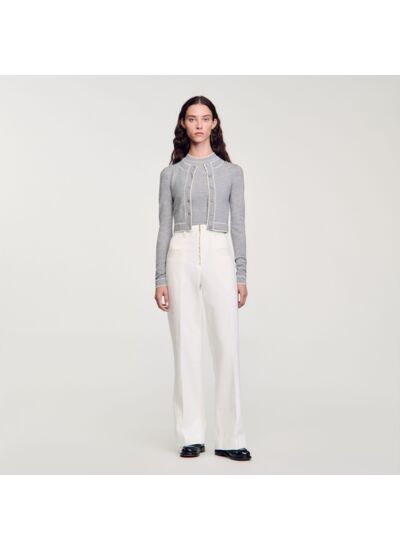Quelle taille choisir pour un ajustement parfait ? Il est conseillé de se référer au guide des tailles Sandro pour choisir la taille qui correspond à votre morphologie, le cardigan étant conçu pour une coupe ajustée et moderne.