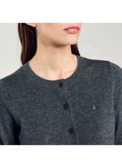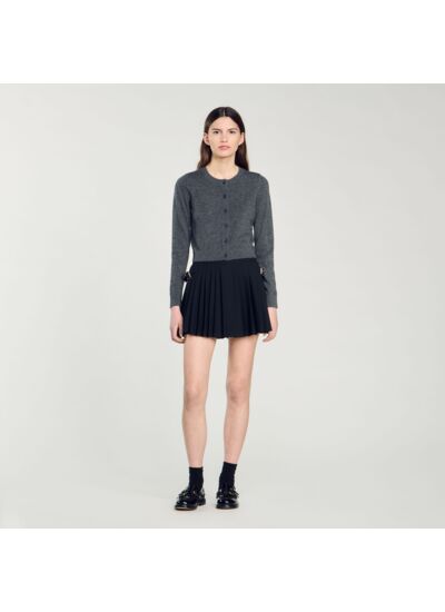 Cardigan court en maille composée de laine et de cachemire, muni d'un col rond, de manches longues et orné d'une puce Sandro ton sur ton.