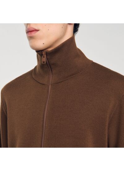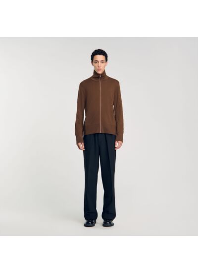 Cardigan en laine muni d'une fermeture zippée et de manches longues.