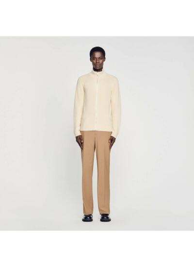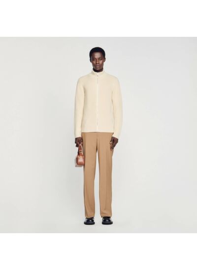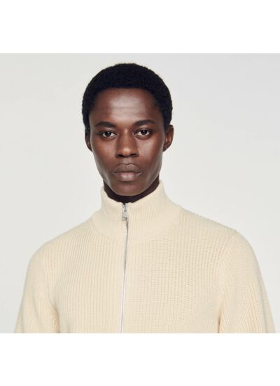 Cardigan en maille muni d'un col montant, d'une fermeture zippée, et de manches longues.