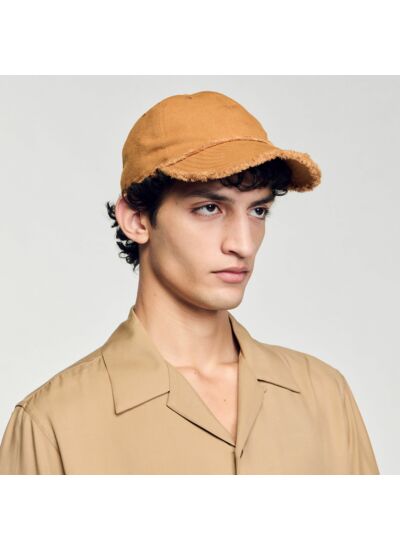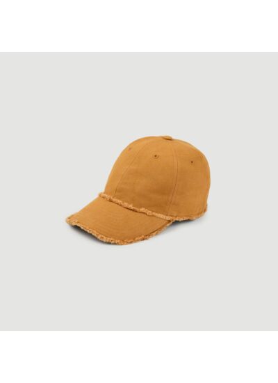 Casquette en toile de coton à bords effilochés et patch en cuir.