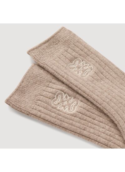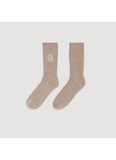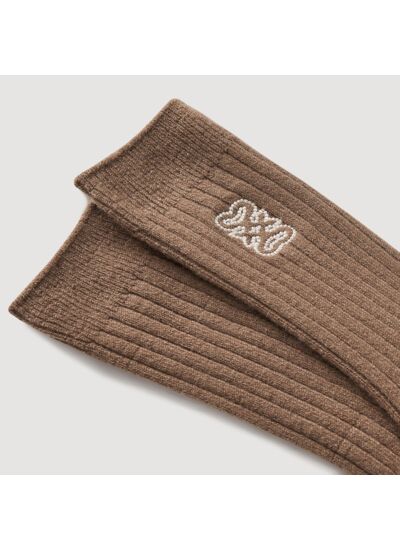 Chaussettes mi-hautes en cachemire côtelé ornées d'une broderie Double S contrastée sur les côtés.