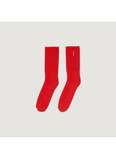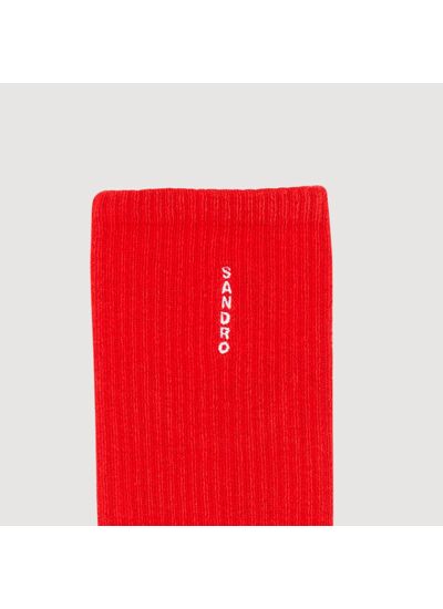 Chaussettes en coton ornées d'une broderie SANDRO verticale.