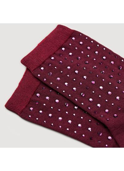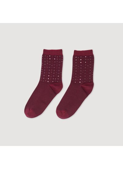 Chaussettes en maille fine ornées de strass ton sur ton.