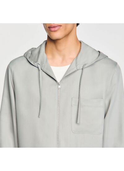 Chemise fluide esprit hoodie munie d'une fermeture zippée, d'une capuche à cordons et de manches longues.