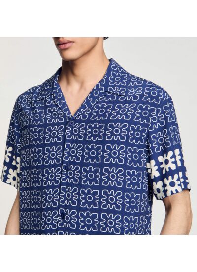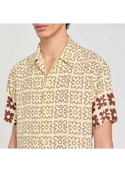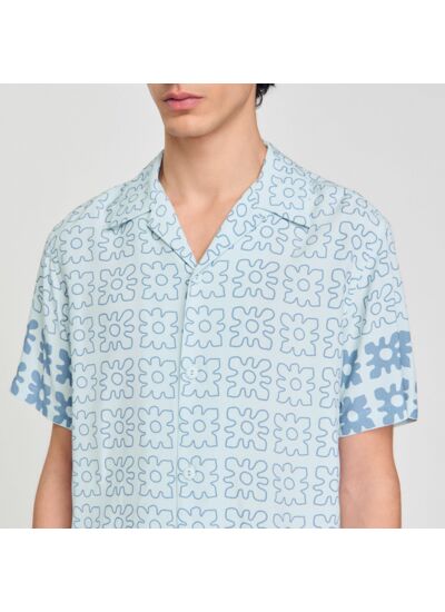 Chemise fluide à manches courtes et col requin orné d'un imprimé fleuri.
