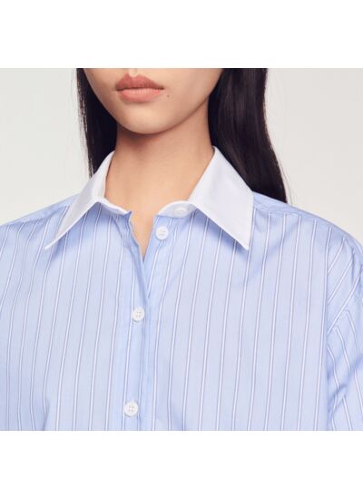 Chemise boutonnée à col et poignets contrastés, munie d'une patte de boutonnage, de manches longues, et ornée d'un imprimé rayures.
