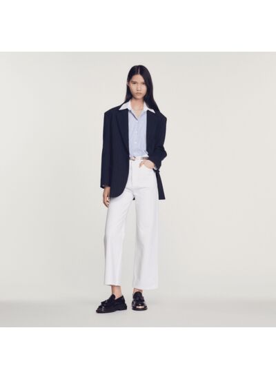 Avec quels styles peut-on associer cette chemise Sandro ? Elle se marie parfaitement avec un pantalon chino ou un jean pour un look casual chic, ou sous un blazer pour une allure plus formelle et moderne. Les rayures apportent une touche graphique qui dynamise votre tenue.